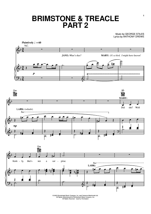 Digital Sheet Music for Brimstone & Treacle Part 2 by George Stiles, Anthony Drewe scored for Piano/Vocal/Chords; id:397452