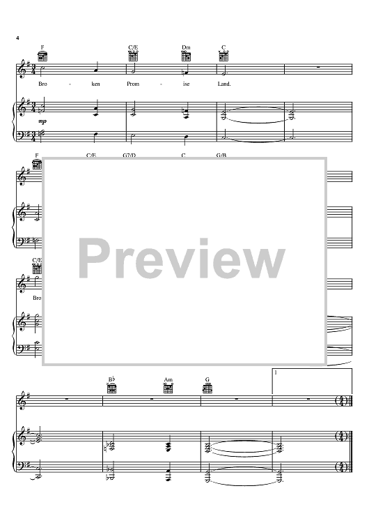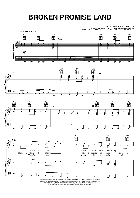 Digital Sheet Music for Broken Promise Land by Elvis Costello, Allen Toussaint scored for Piano/Vocal/Chords; id:394723