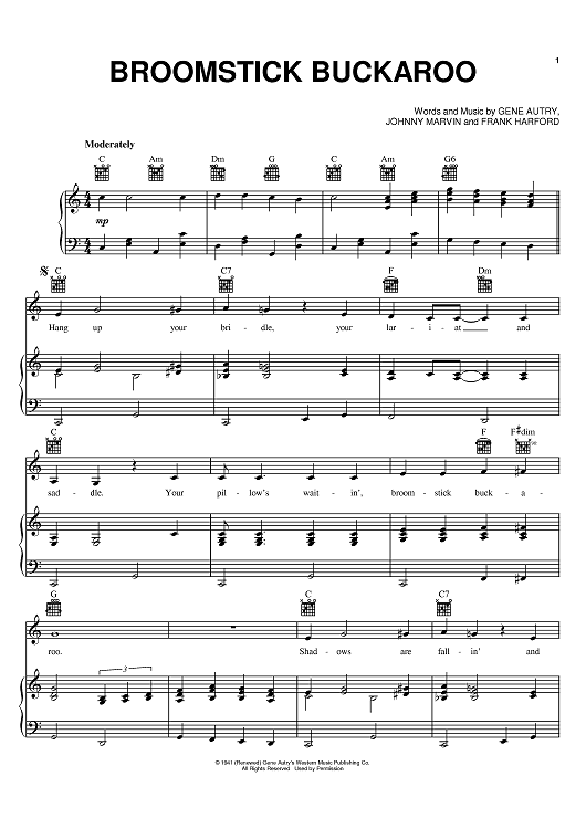 Digital Sheet Music for Broomstick Buckaroo by Gene Autry, Frank Harford, Johnny Marvin scored for Piano/Vocal/Chords; id:375470