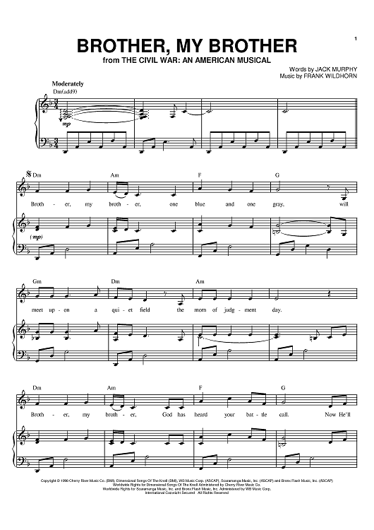 Digital Sheet Music for Brother, My Brother by Frank Wildhorn, Jack Murphy, Joan Frey Boytim scored for Piano/Vocal/Chords; id:401995