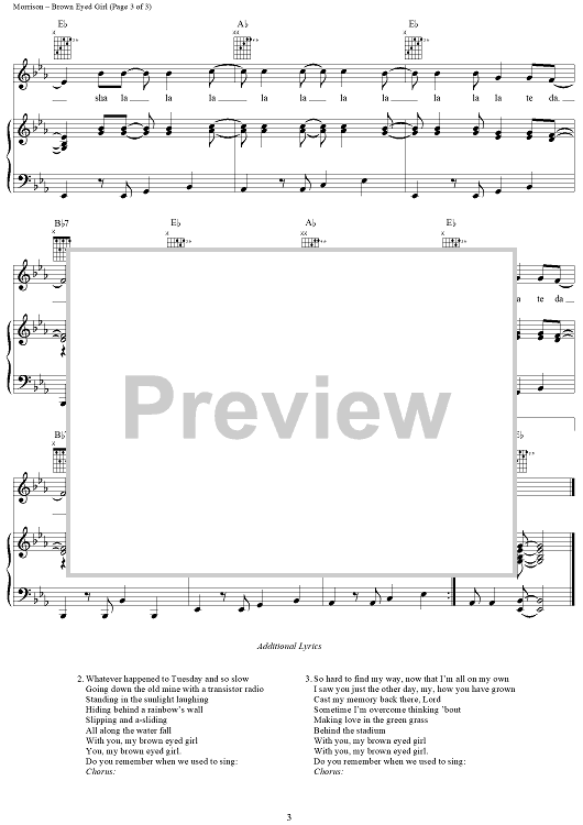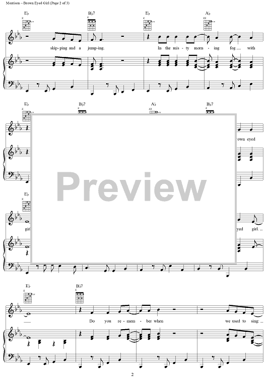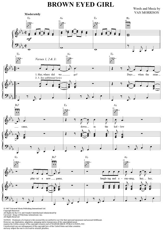 Digital Sheet Music for Brown Eyed Girl by Van Morrison scored for Piano/Vocal/Chords; id:297212