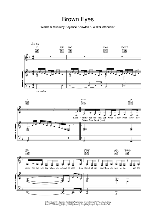 Digital Sheet Music for Brown Eyes by Destiny's Child scored for Piano/Vocal/Chords; id:377399