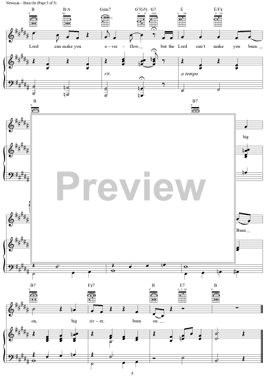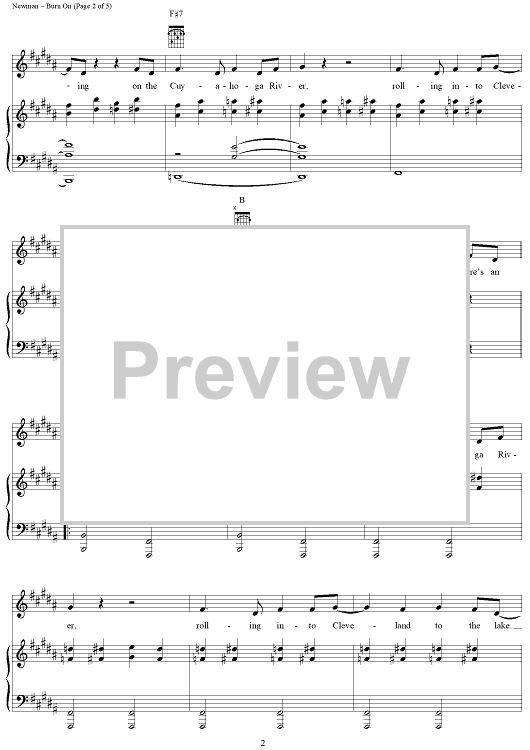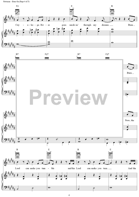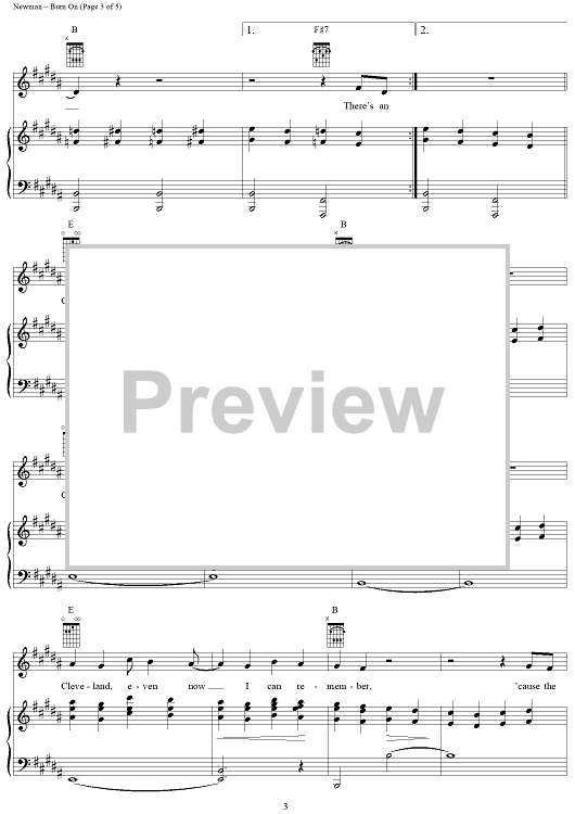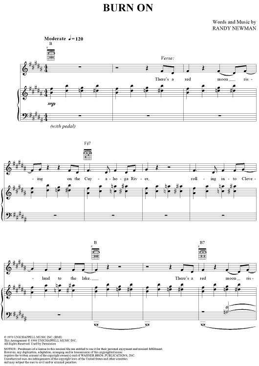 Digital Sheet Music for Burn On by Randy Newman scored for Piano/Vocal/Chords; id:253253