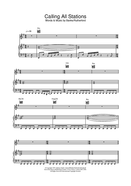 Digital Sheet Music for Calling All Stations by Genesis scored for Piano/Vocal/Chords; id:376538