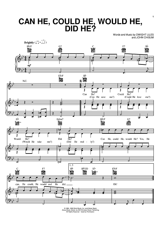 Digital Sheet Music for Can He, Could He, Would He, Did He? by John Chisum, Dwight Liles, The Cathedrals scored for Piano/Vocal/Chords; id:386467