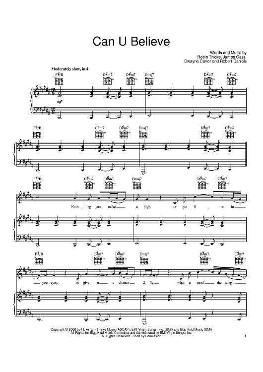 Digital Sheet Music for Can U Believe by Robert Daniels, Robin Thicke scored for Piano/Vocal/Chords; id:401825