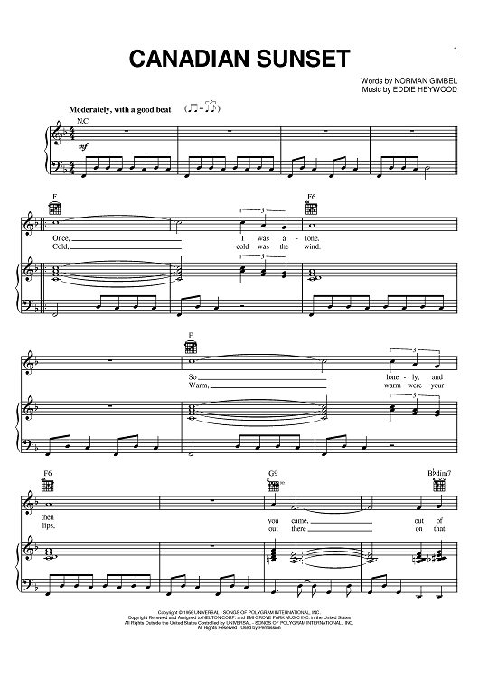 Digital Sheet Music for Canadian Sunset by Andy Williams, Norman Gimbel, Eddie Heywood scored for Piano/Vocal/Chords; id:383199