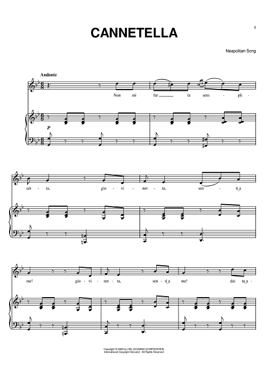Digital Sheet Music for Cannetella by scored for Piano/Vocal/Chords; id:384253