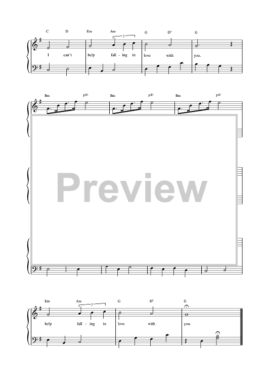 Digital Sheet Music for Can't Help Falling by George David Weiss, UB40 scored for Piano/Vocal/Chords; id:380269