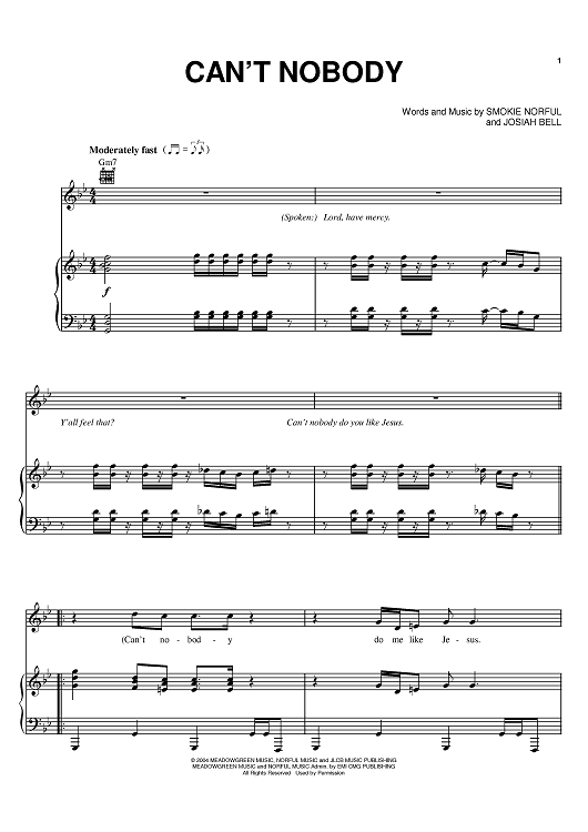 Digital Sheet Music for Can't Nobody by Josiah Bell, Smokie Norful scored for Piano/Vocal/Chords; id:381644