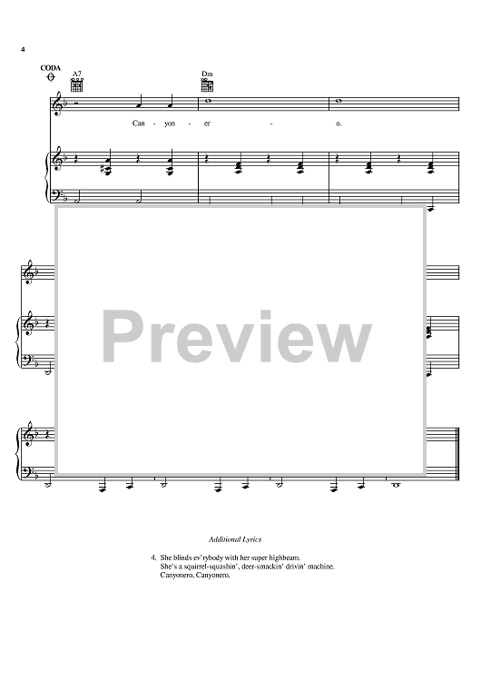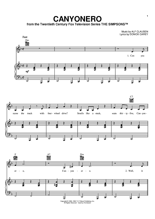 Digital Sheet Music for Canyonero by Alf Clausen, Donick Carey scored for Piano/Vocal/Chords; id:394051