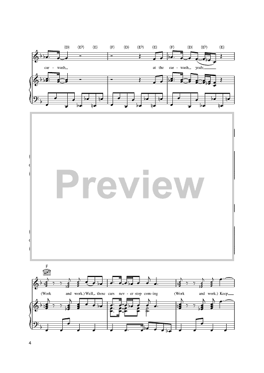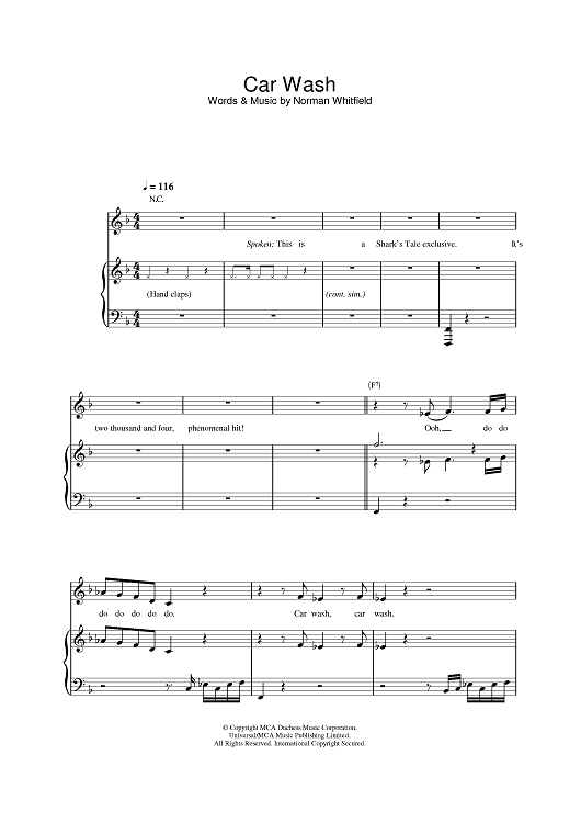 Digital Sheet Music for Car Wash by Norman Jesse Whitfield, Rose Royce, Christina Aguilera scored for Piano/Vocal/Chords; id:381257