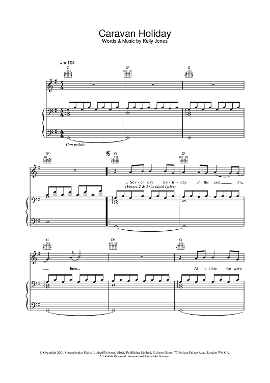 Digital Sheet Music for Caravan Holiday by Kelly Jones, Stereophonics scored for Piano/Vocal/Chords; id:380062