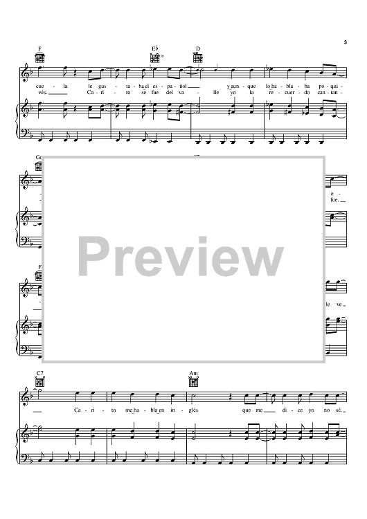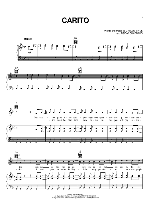 Digital Sheet Music for Carito by Egidio Cuadrado, Carlos Vives scored for Piano/Vocal/Chords; id:370459
