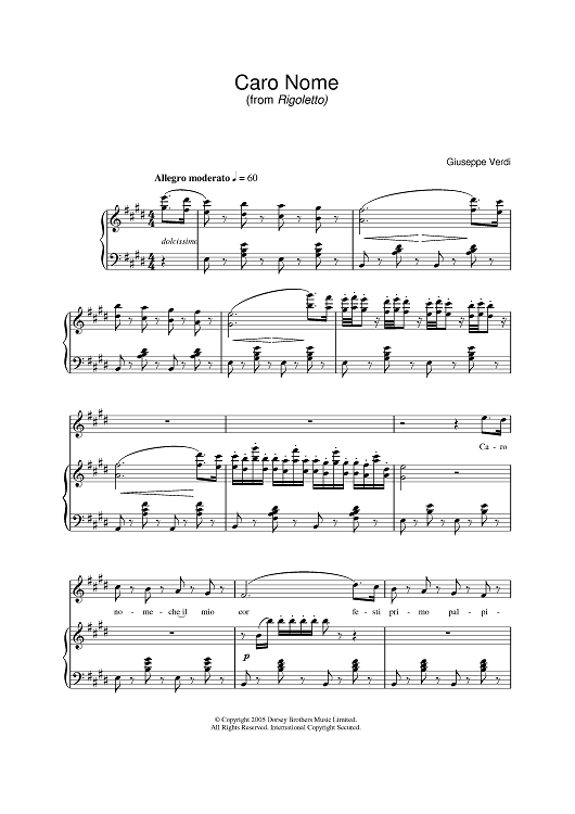 Digital Sheet Music for Caro Nome (from Rigoletto) by Giuseppe Verdi scored for Piano/Vocal/Chords; id:389225