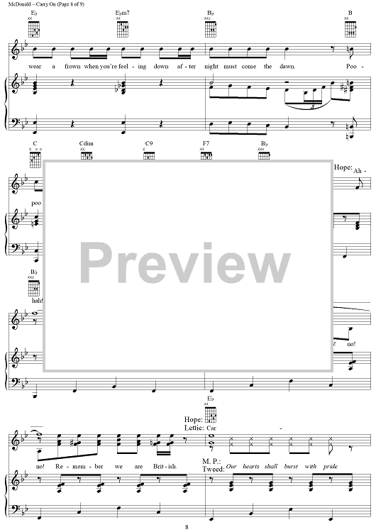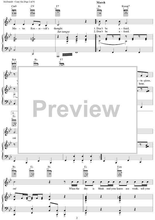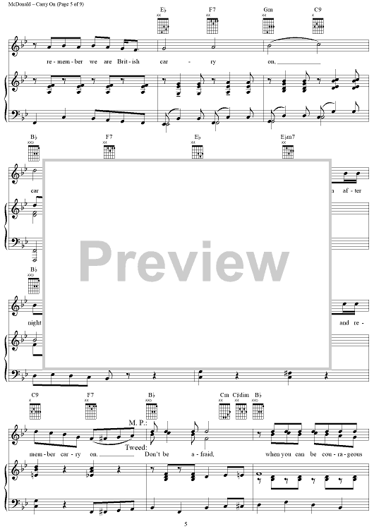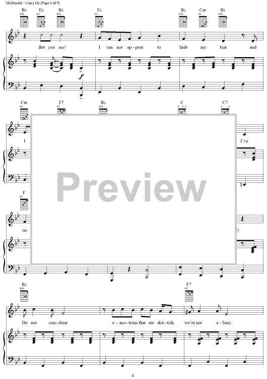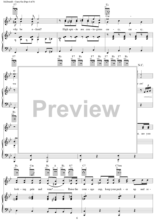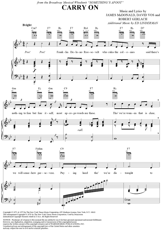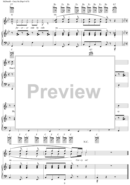 Digital Sheet Music for Carry On by James McDonald, David Vos, Robert Gerlach, Ed Linderman scored for Piano/Vocal/Chords; id:356012