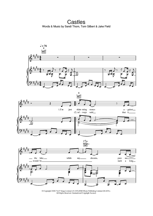 Digital Sheet Music for Castles by Jake Field, Tom Gilbert, Sandi Thom scored for Piano/Vocal/Chords; id:391523