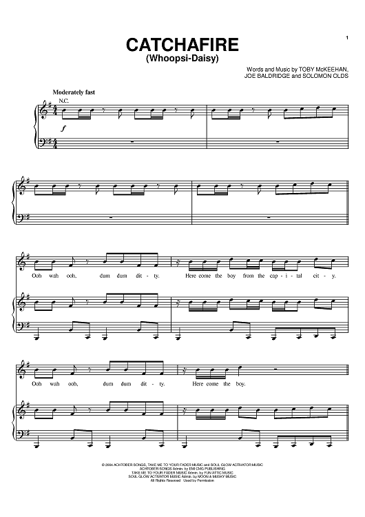 Digital Sheet Music for Catchafire (Whoopsi-Daisy) by T-Bone Walker, tobyMac, Joe Baldridge, Solomon Olds scored for Piano/Vocal/Chords; id:382022