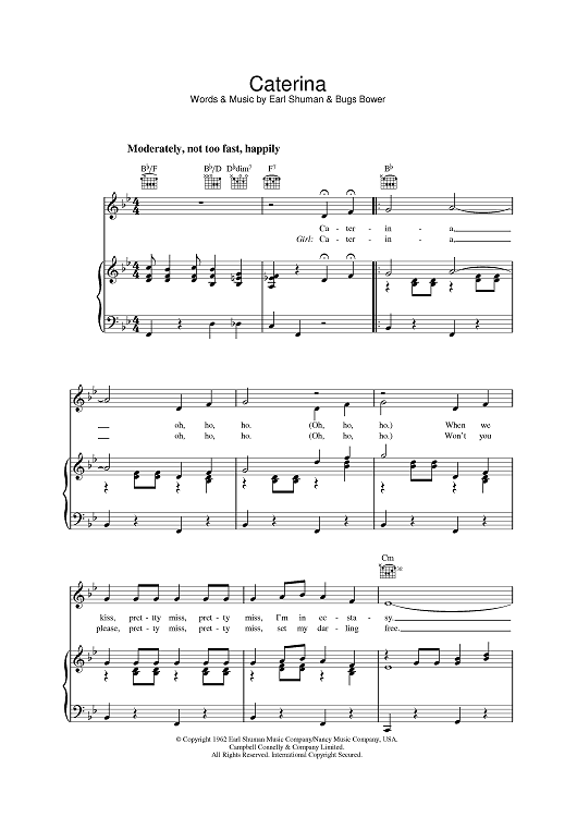 Digital Sheet Music for Caterina by Earl Shuman, Bugs Bower scored for Piano/Vocal/Chords; id:395603