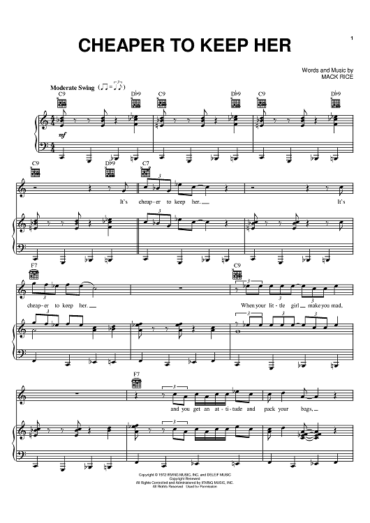 Digital Sheet Music for Cheaper To Keep Her by Johnnie Taylor, Mack Rice scored for Piano/Vocal/Chords; id:402421