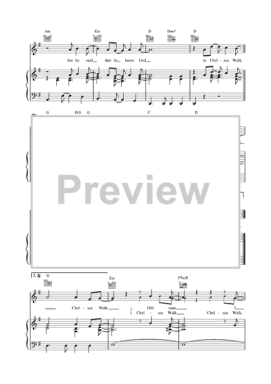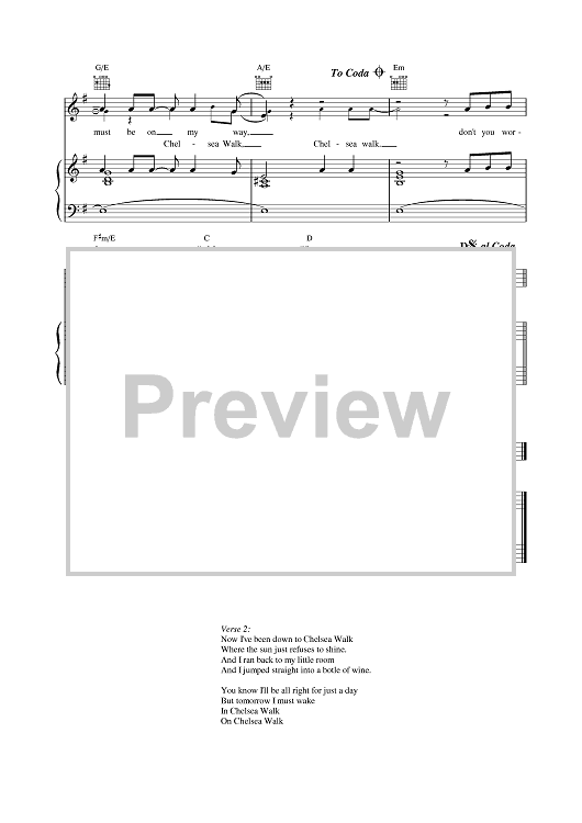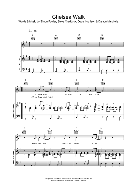 Digital Sheet Music for Chelsea Walk by Steve Cradock, Simon Fowler, Oscar Harrison, Damon Minchella, Ocean Colour Scene scored for Piano/Vocal/Chords; id:379803