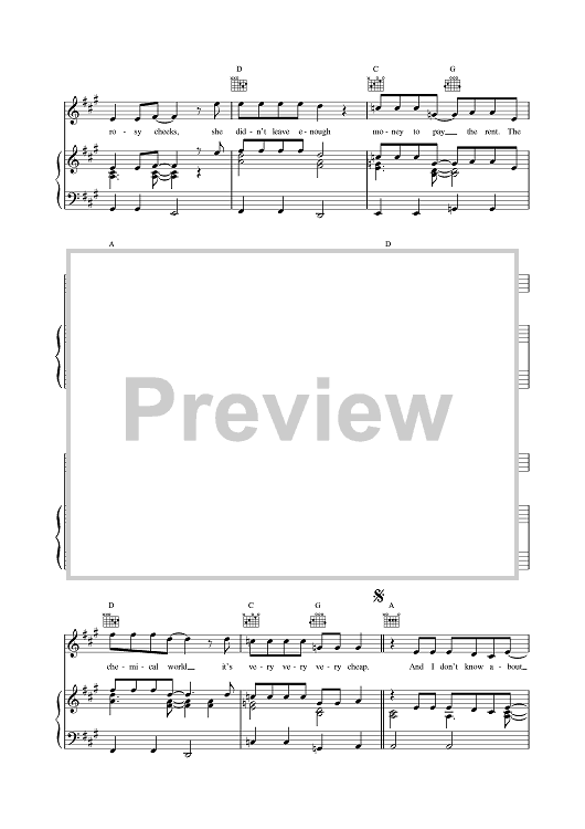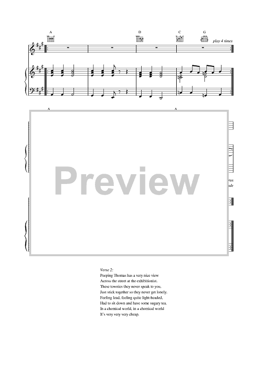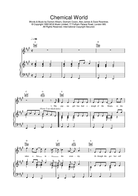 Digital Sheet Music for Chemical World by Blur scored for Piano/Vocal/Chords; id:376186