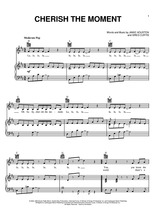 Digital Sheet Music for Cherish The Moment by Jamie Houston, Greg Curtis, The Cheetah Girls scored for Piano/Vocal/Chords; id:394572
