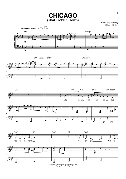 Digital Sheet Music for Chicago (That Toddlin' Town) by Frank Sinatra, Fred Fisher scored for Piano/Vocal/Chords; id:390406