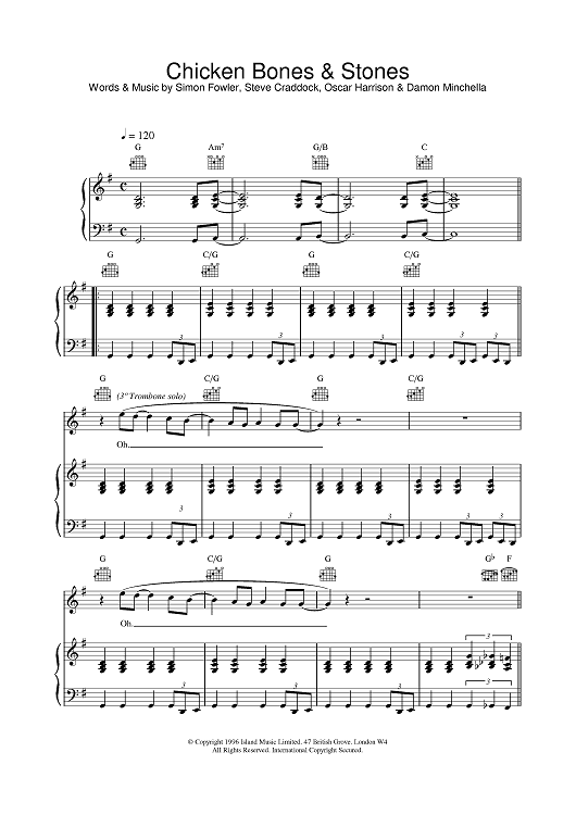 Digital Sheet Music for Chicken Bones & Stones by Ocean Colour Scene scored for Piano/Vocal/Chords; id:376400