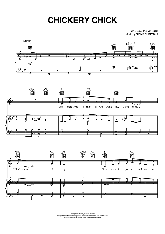 Digital Sheet Music for Chickery Chick by Sidney Lippman, Sylvia Dee scored for Piano/Vocal/Chords; id:382714