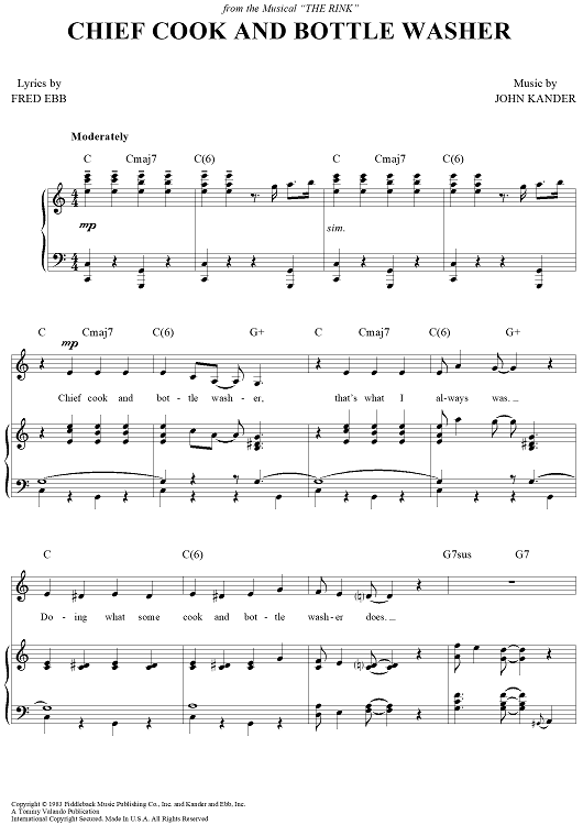 Digital Sheet Music for Chief Cook and Bottle Washer by John Kander, Fred Ebb scored for Piano/Vocal/Chords; id:266431