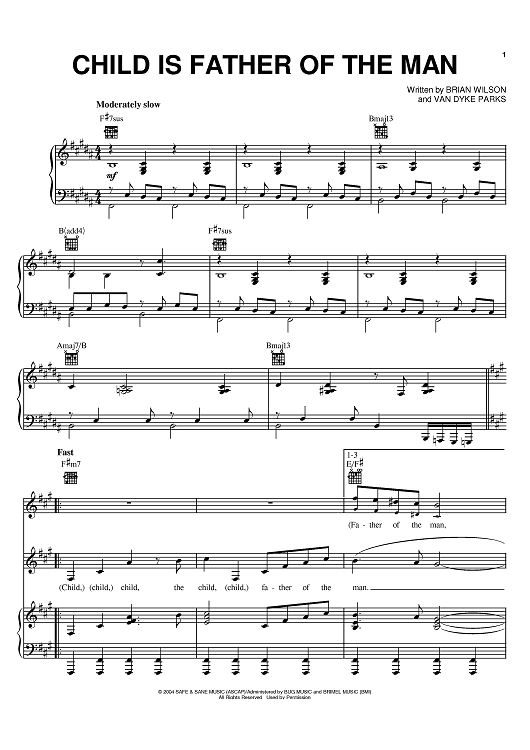 Digital Sheet Music for Child Is Father Of The Man by Brian Wilson, Van Dyke Parks scored for Piano/Vocal/Chords; id:382247