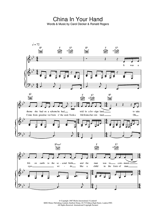 Digital Sheet Music for China In Your Hand by T'Pau scored for Piano/Vocal/Chords; id:377057