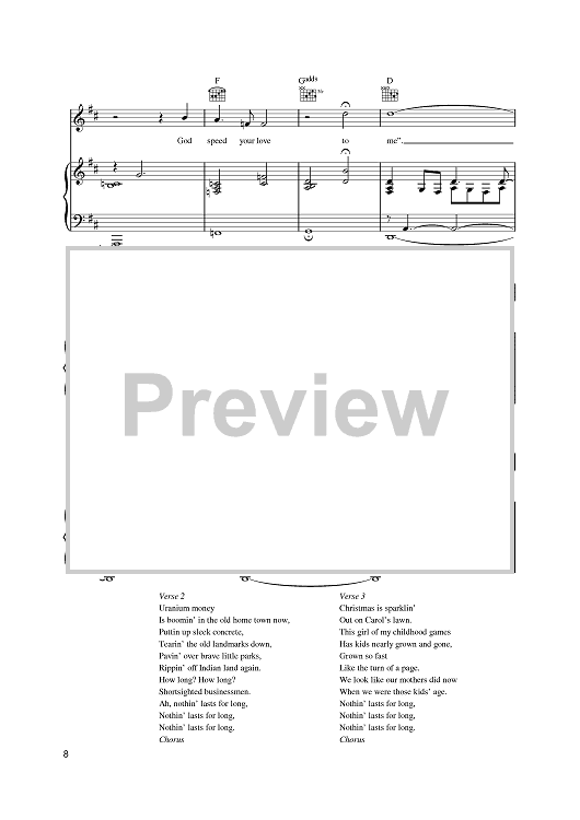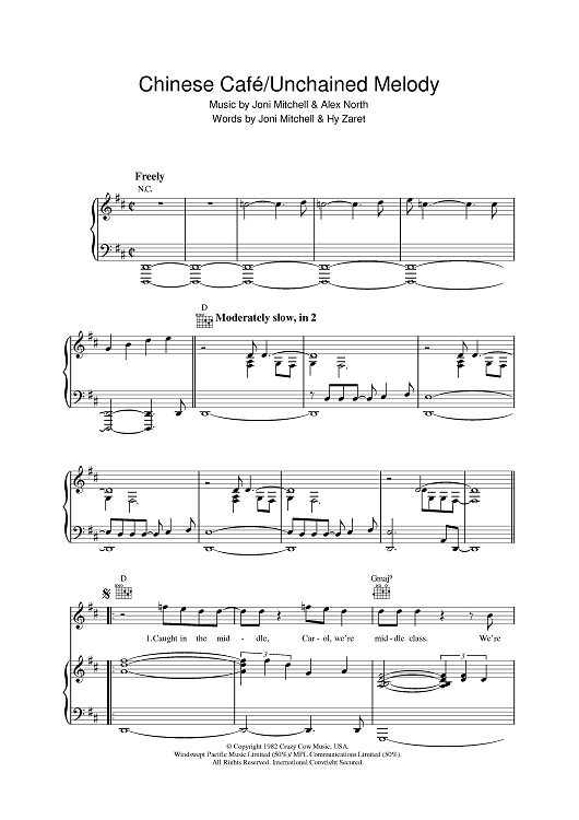 "Chinese Cafe/ Unchained Melody" Sheet Music by Joni Mitchell