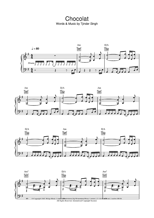 Digital Sheet Music for Chocolat by Cornershop scored for Piano/Vocal/Chords; id:376665