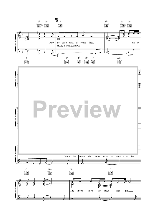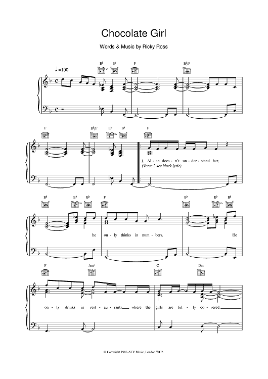 Digital Sheet Music for Chocolate Girl by Deacon Blue scored for Piano/Vocal/Chords; id:375929