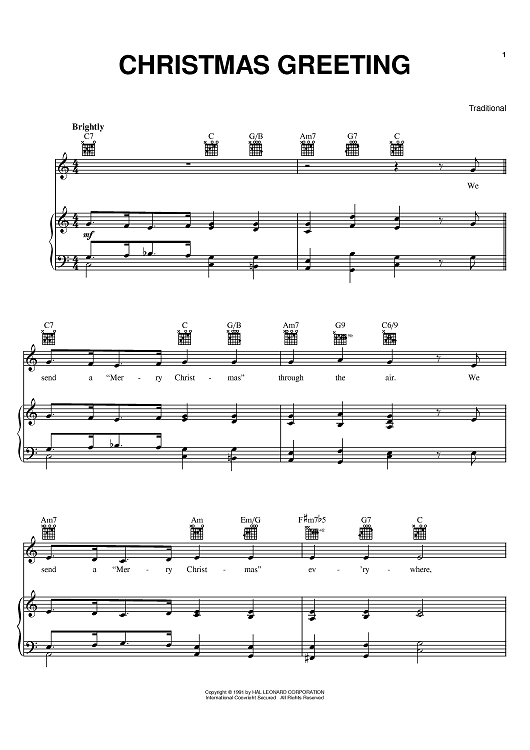 Digital Sheet Music for Christmas Greeting by scored for Piano/Vocal/Chords; id:398007
