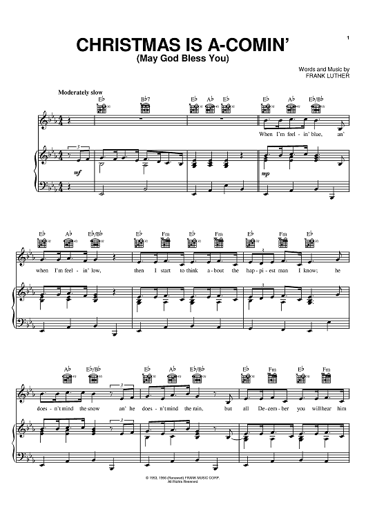 Digital Sheet Music for Christmas Is A-Comin' (May God Bless You) by Frank Luther scored for Piano/Vocal/Chords; id:385753