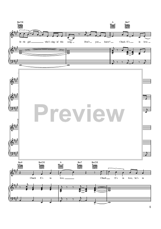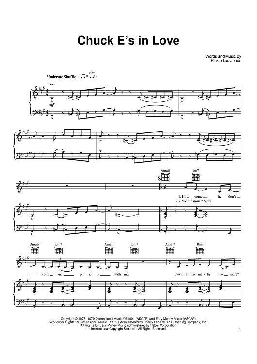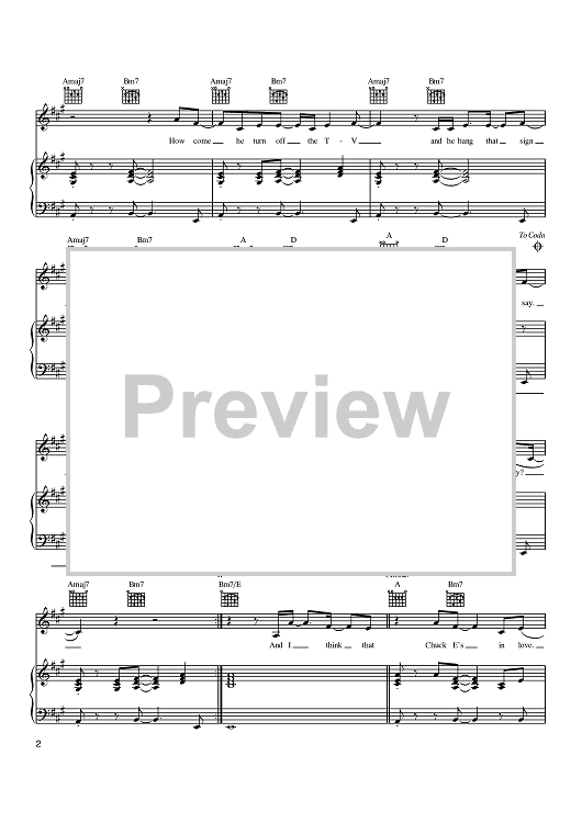 Digital Sheet Music for Chuck E's In Love by Rickie Lee Jones scored for Piano/Vocal/Chords; id:387051