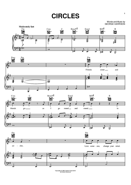 Digital Sheet Music for Circles by George Harrison scored for Piano/Vocal/Chords; id:384907