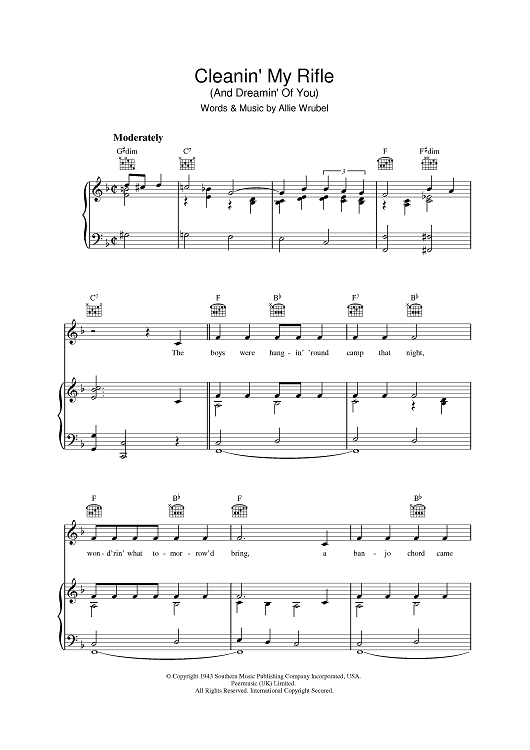 Digital Sheet Music for Cleanin' My Rifle (And Dreamin' Of You) by Roy Rogers, Allie Wrubel scored for Piano/Vocal/Chords; id:395000