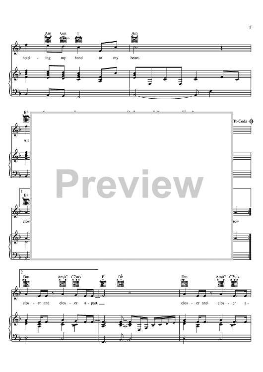 Digital Sheet Music for Closer And Closer Apart by Mary Chapin Carpenter scored for Piano/Vocal/Chords; id:397764