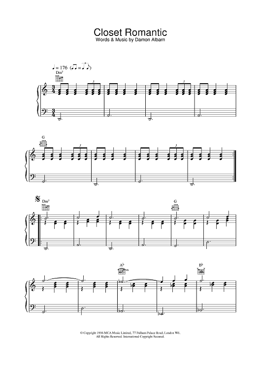 Digital Sheet Music for Closet Romantic by Blur scored for Piano/Vocal/Chords; id:376161