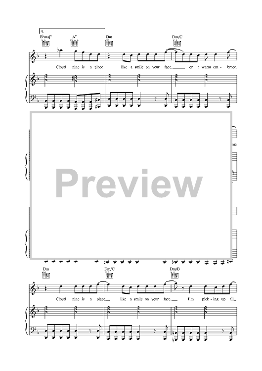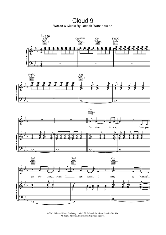 Digital Sheet Music for Cloud 9 by Toploader scored for Piano/Vocal/Chords; id:377600