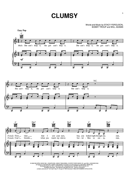 Digital Sheet Music for Clumsy by Bobby Troup, Fergie, will.i.am scored for Piano/Vocal/Chords; id:402239