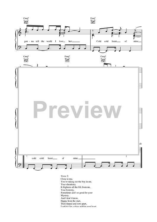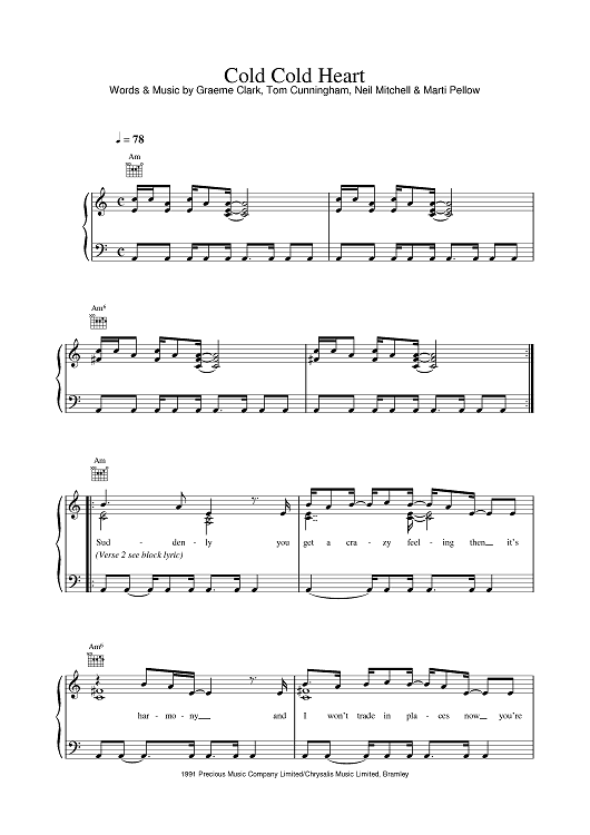 Digital Sheet Music for Cold Cold Heart by Graeme Clark, Tom Cunningham, Neil Mitchell, Wet Wet Wet, Marti Pellow scored for Piano/Vocal/Chords; id:375916