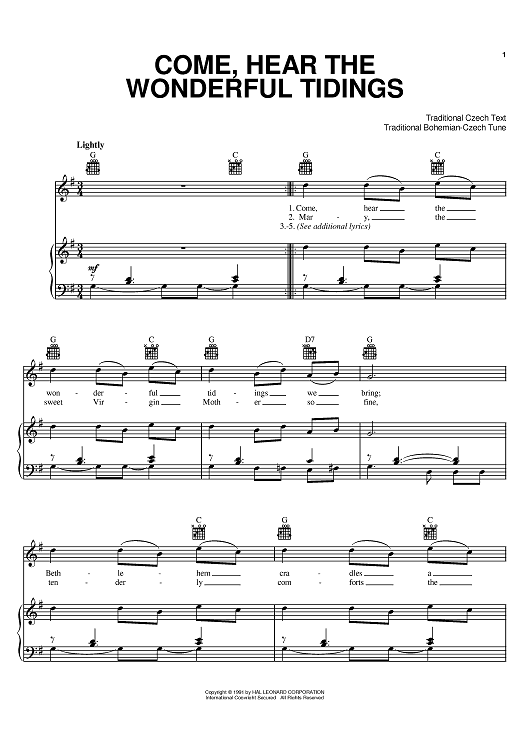 "Come, Hear The Wonderful Tidings" Sheet Music by