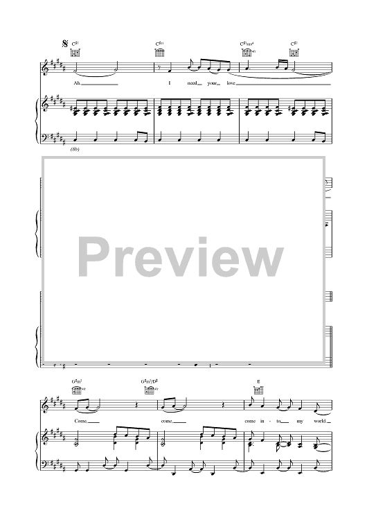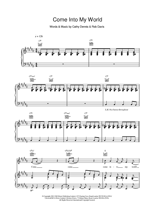 Digital Sheet Music for Come Into My World by Cathy Dennis, Kylie Minogue, Rob Davis scored for Piano/Vocal/Chords; id:380149