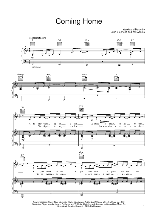 Digital Sheet Music for Coming Home by John Legend, will.i.am scored for Piano/Vocal/Chords; id:396991