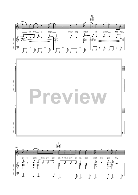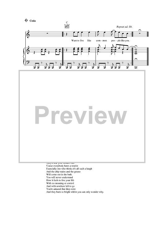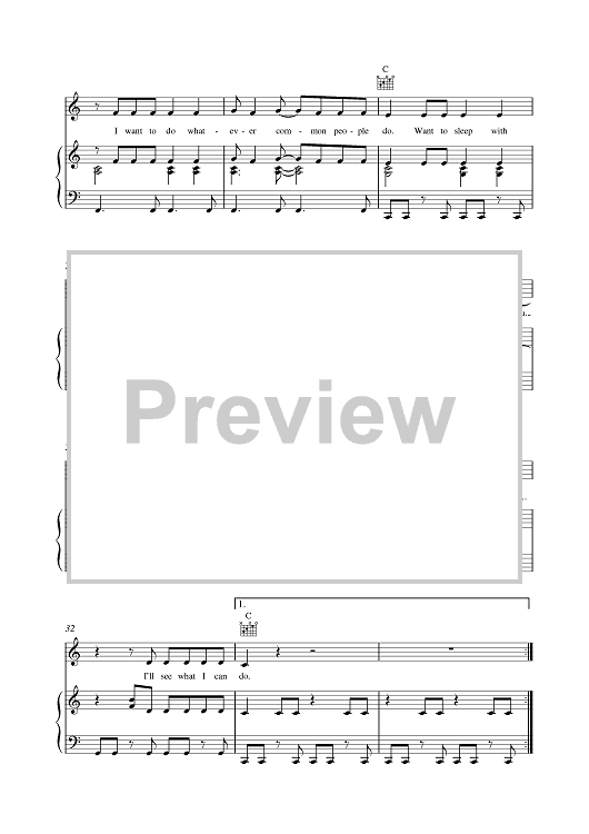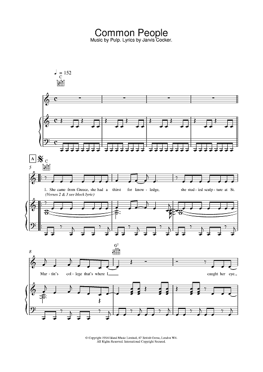 Digital Sheet Music for Common People by Pulp scored for Piano/Vocal/Chords; id:379021